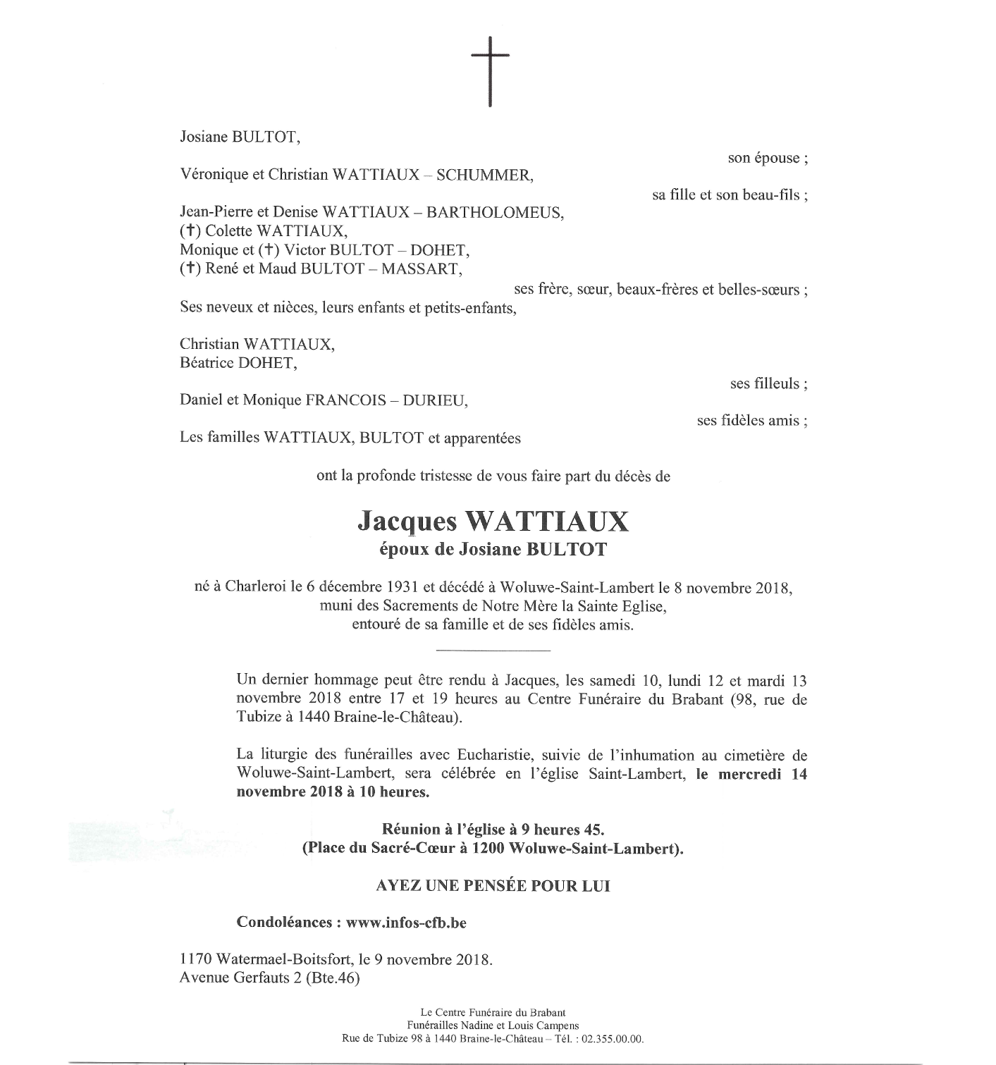 Décédé à Woluwe-Saint-Lambert (1200) le jeudi 8 novembre 2018 à l'âge de 86 ans