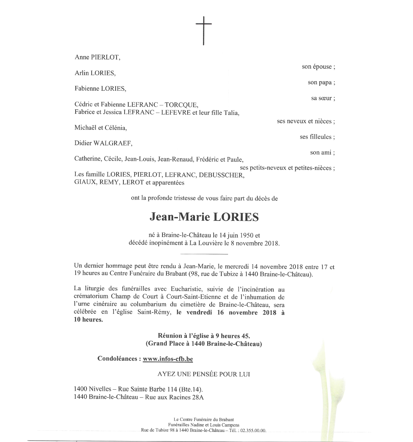 Décédé à La Louvière (7100) le jeudi 8 novembre 2018 à l'âge de 68 ans