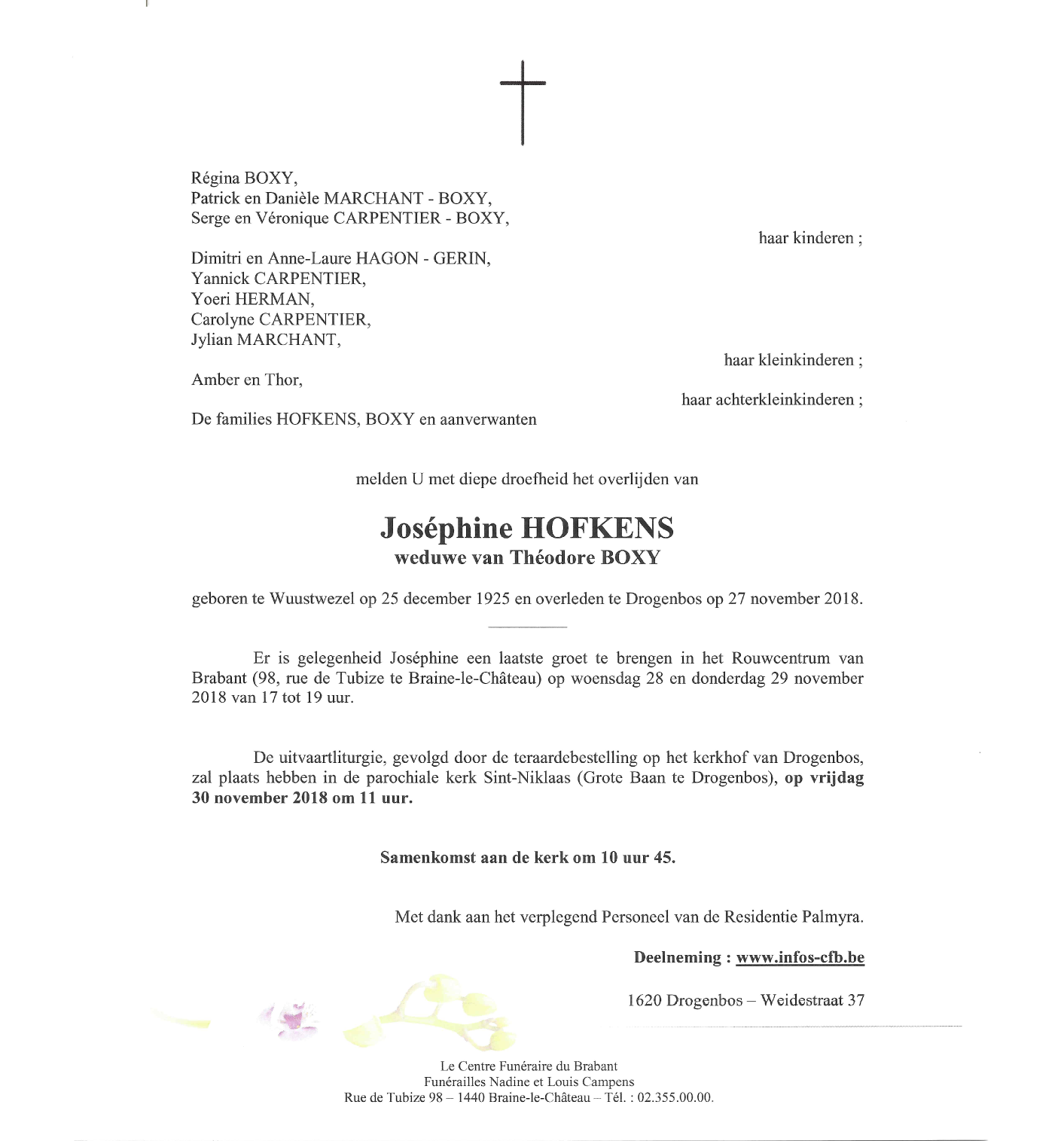 Décédée à Drogenbos (1620) le mardi 27 novembre 2018 à l'âge de 92 ans