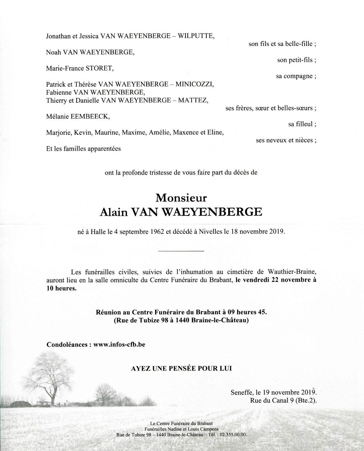 Décédé à Nivelles (1400) le lundi 18 novembre 2019 à l'âge de 57 ans