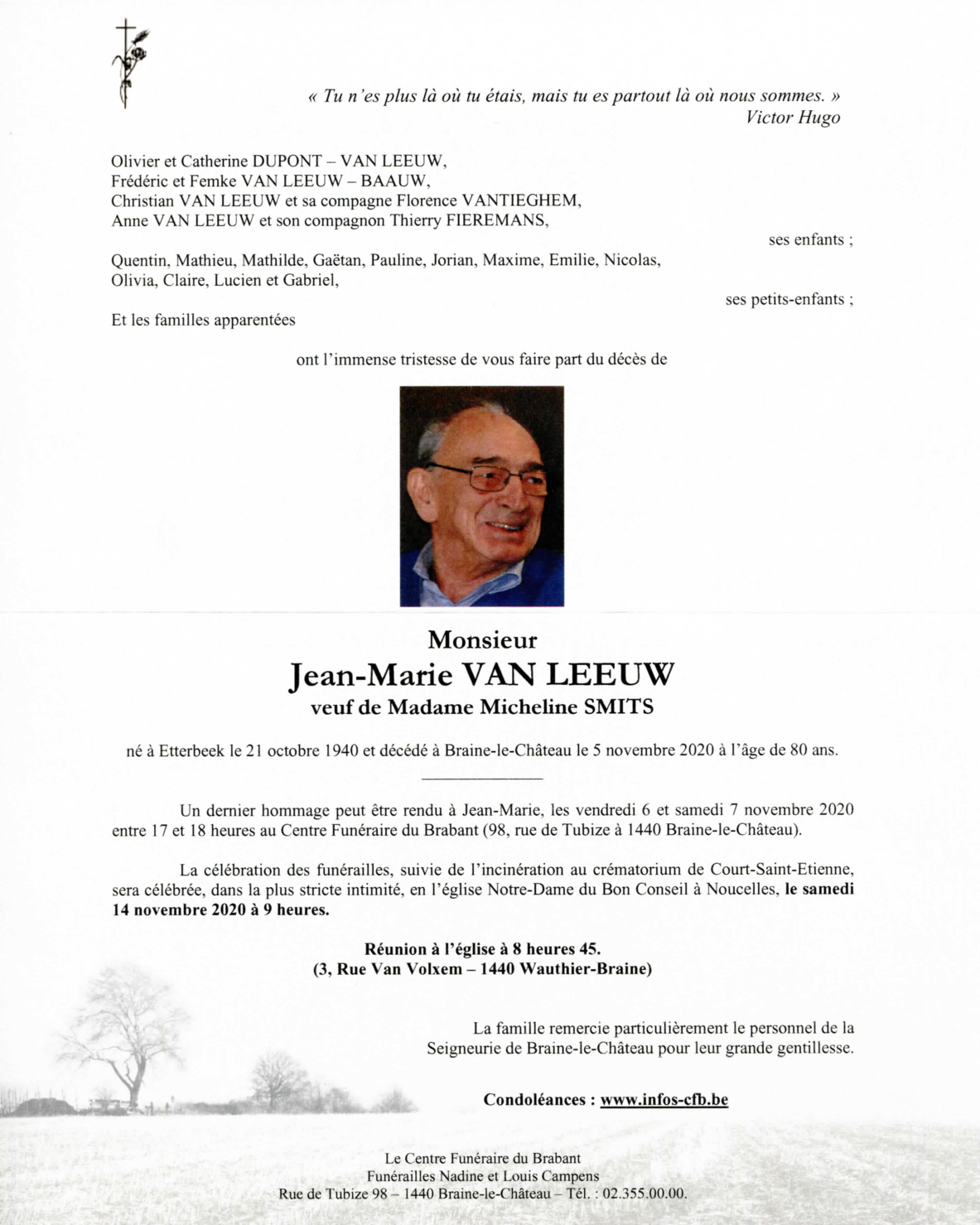 Décédé à Braine-le-Château (1440) le jeudi 5 novembre 2020 à l'âge de 80 ans