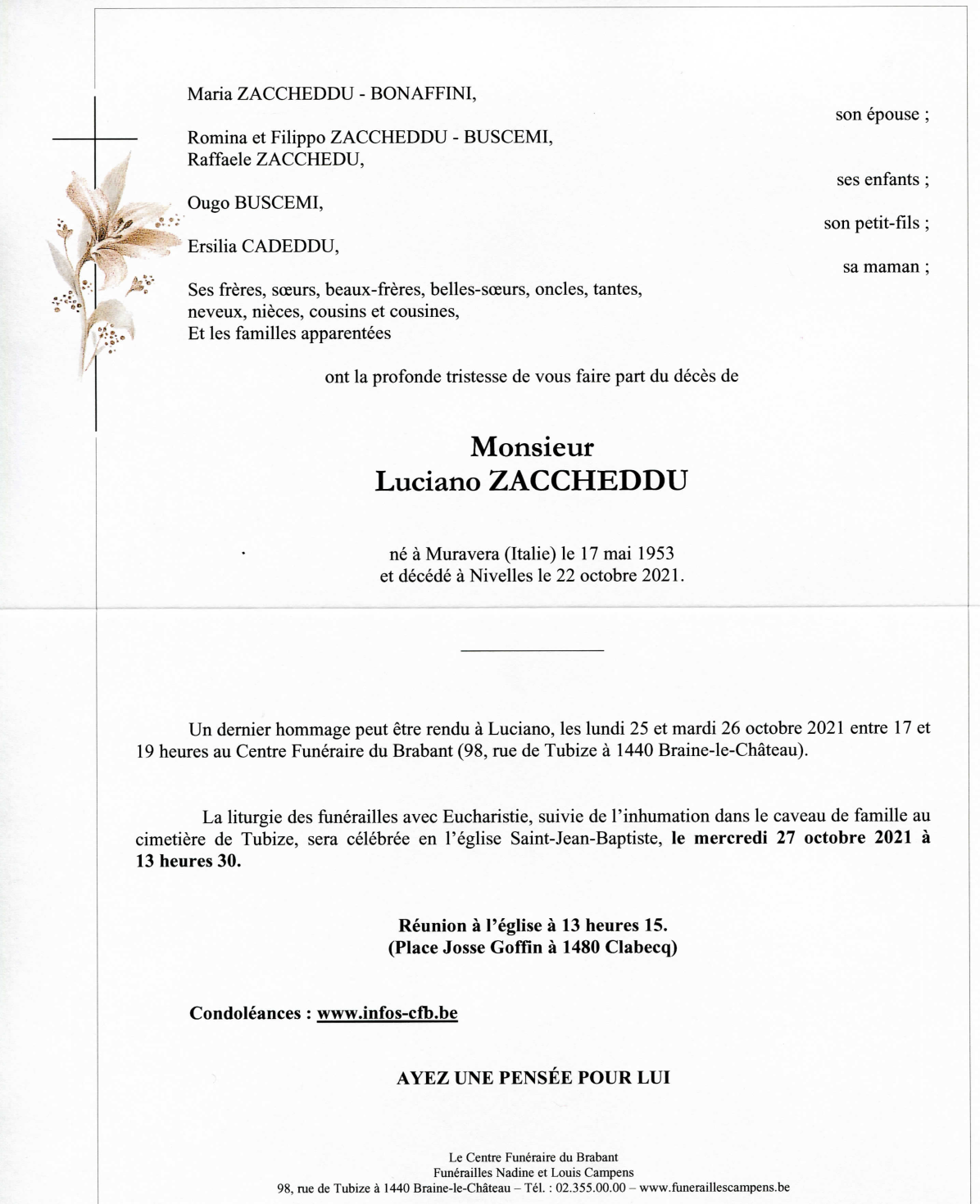 Décédé à Nivelles (1400) le vendredi 22 octobre 2021 à l'âge de 68 ans
