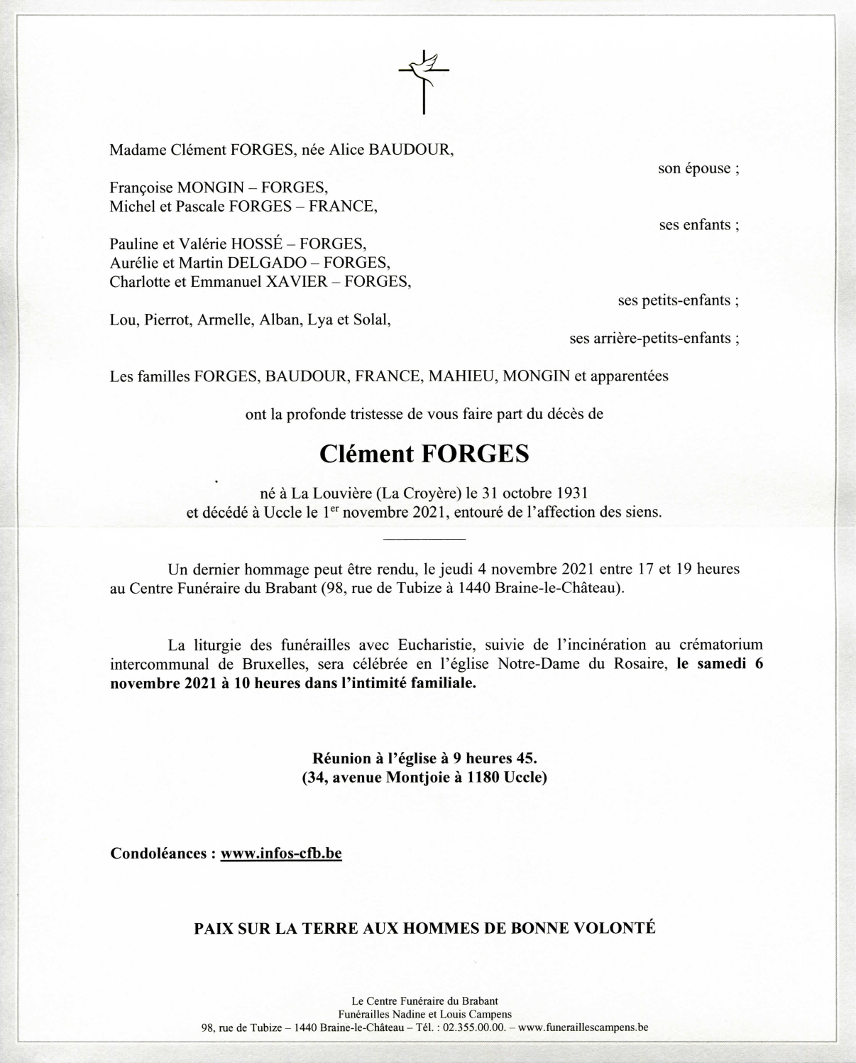 Décédé à Uccle (1180) le lundi 1 novembre 2021 à l'âge de 90 ans