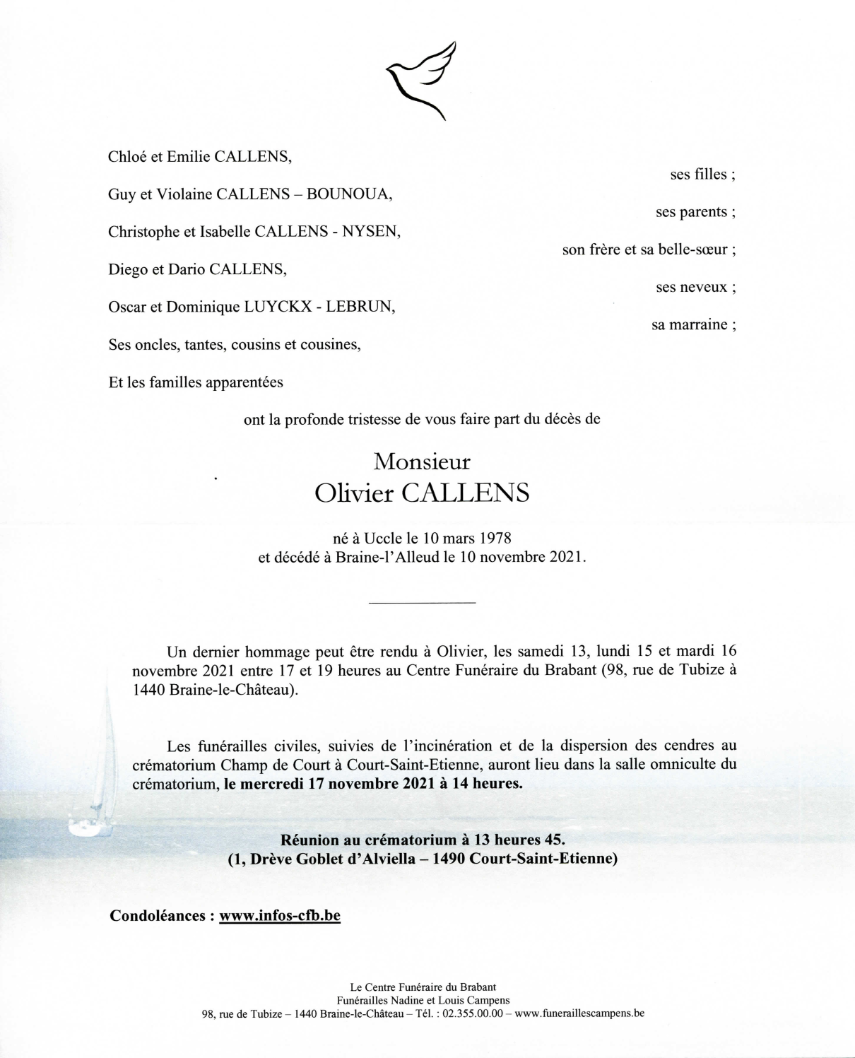Décédé à Braine-l'Alleud (1420) le mercredi 10 novembre 2021 à l'âge de 43 ans