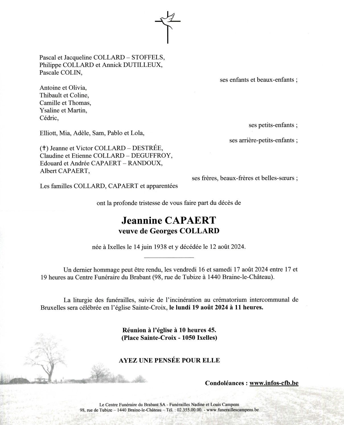 Décédée à Ixelles (1050) le lundi 12 août 2024 à l'âge de 86 ans