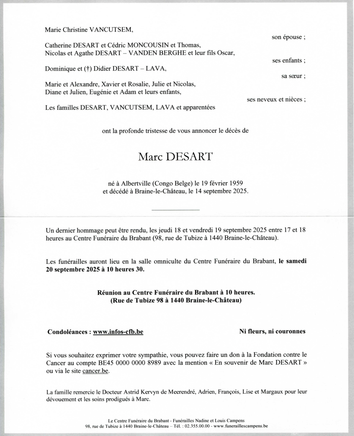 Décédé à Braine-le-Château (1440) le dimanche 14 septembre 2025 à l'âge de 66 ans