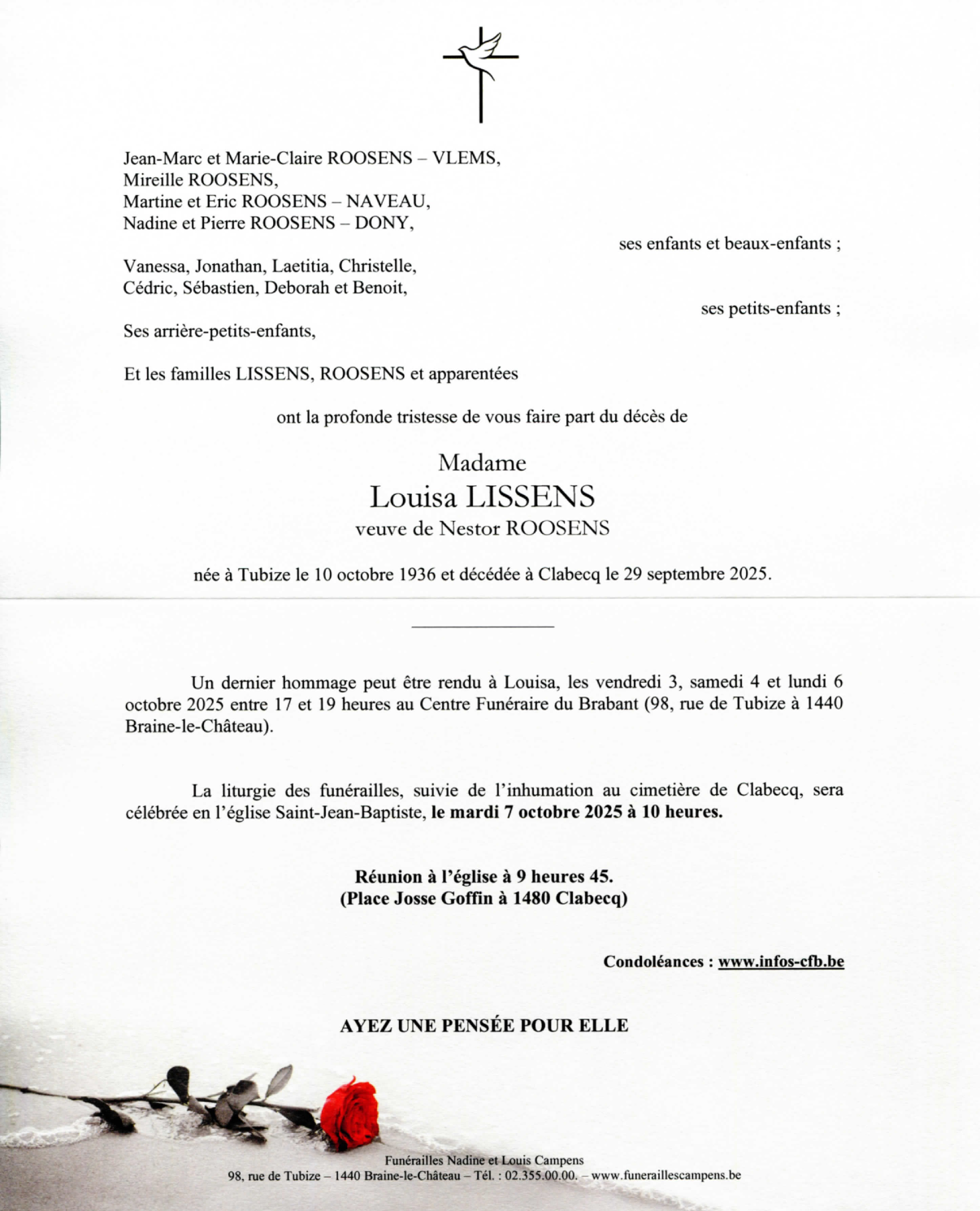 Décédée à Clabecq (1480) le lundi 29 septembre 2025 à l'âge de 88 ans