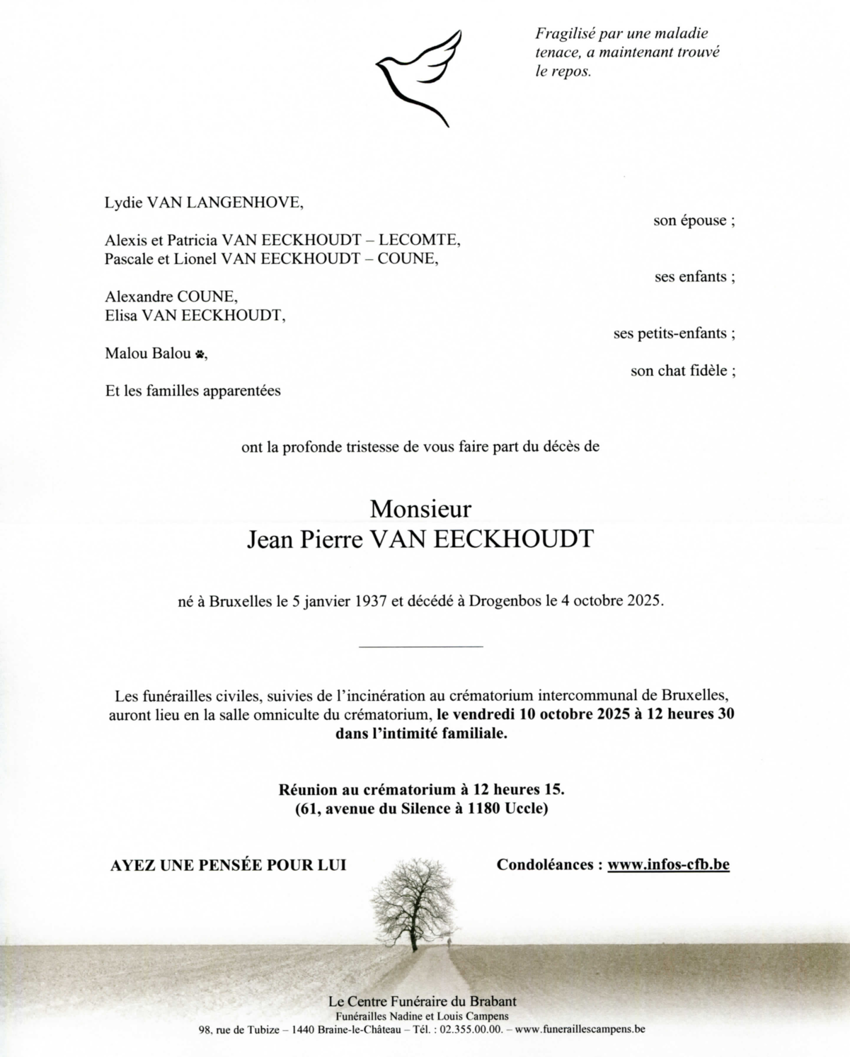 Décédé à Drogenbos (1620) le samedi 4 octobre 2025 à l'âge de 88 ans