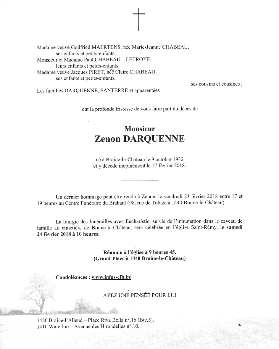 Décédé à Braine-le-Château (1440) le samedi 17 février 2018 à l'âge de 85 ans