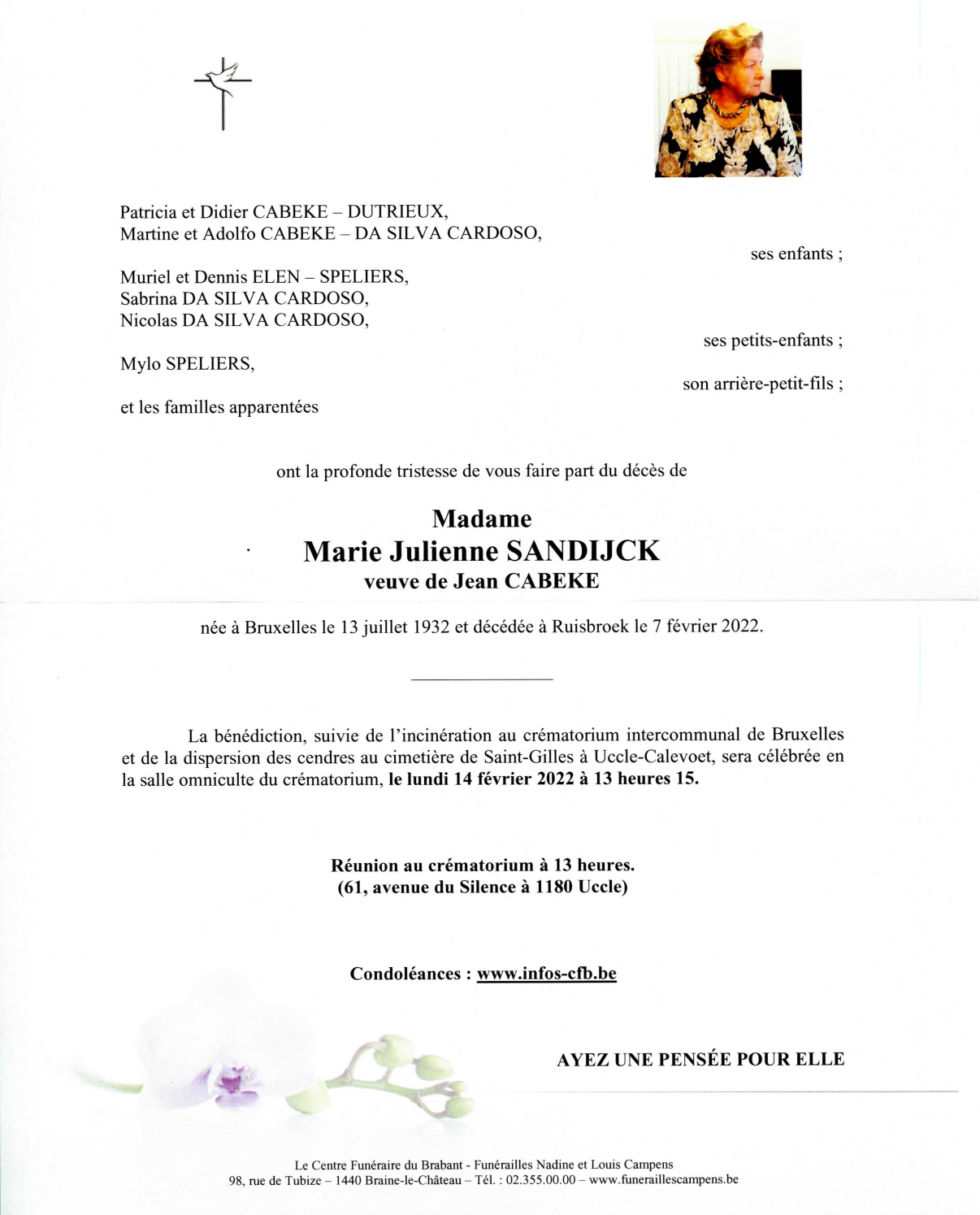 Décédée à Ruisbroek (Bt.) (1601) le lundi 7 février 2022 à l'âge de 89 ans