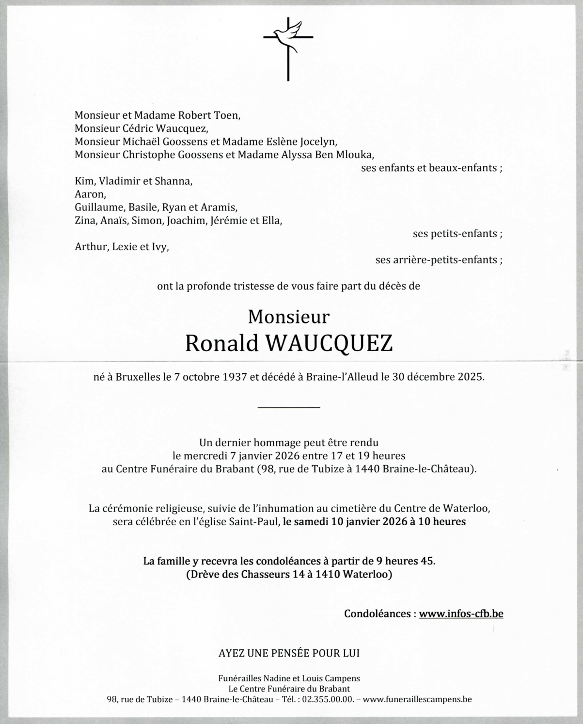 Décédé à Braine-l'Alleud (1420) le mardi 30 décembre 2025 à l'âge de 88 ans