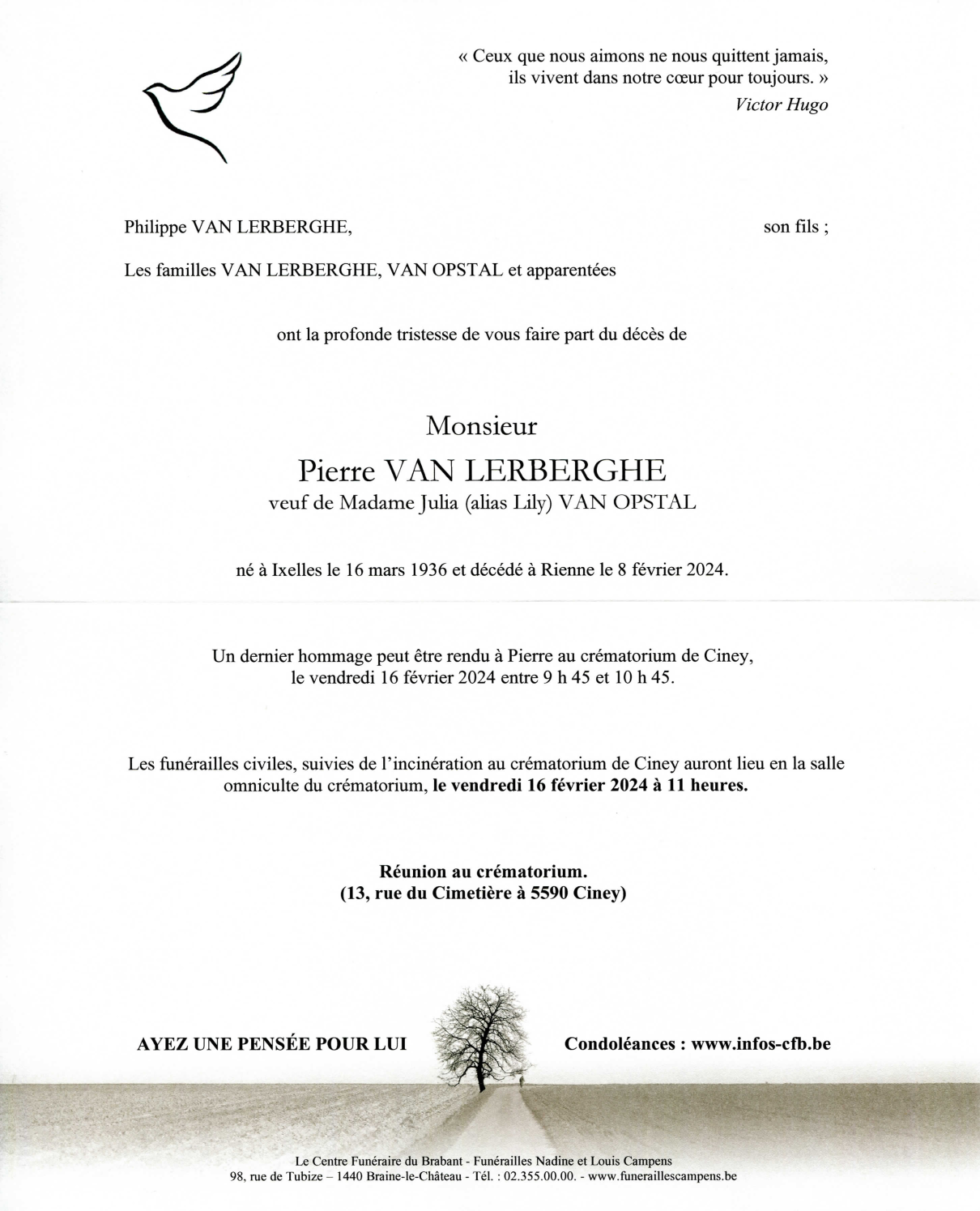 Décédé à Rienne (5575) le jeudi 8 février 2024 à l'âge de 87 ans
