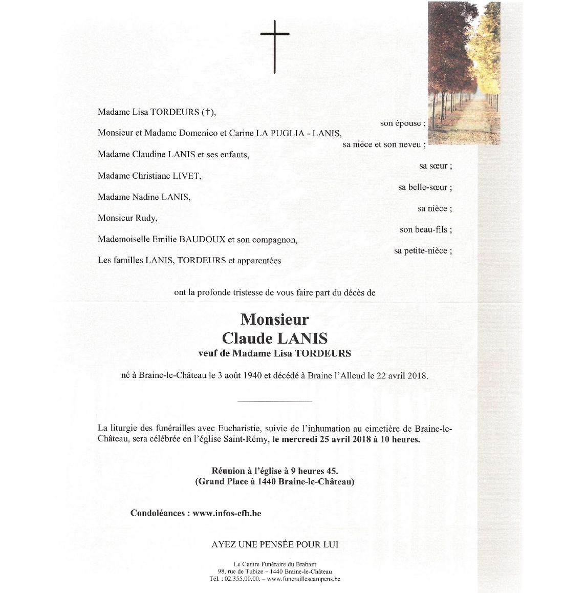 Décédé à Braine-l'Alleud (1420) le dimanche 22 avril 2018 à l'âge de 77 ans