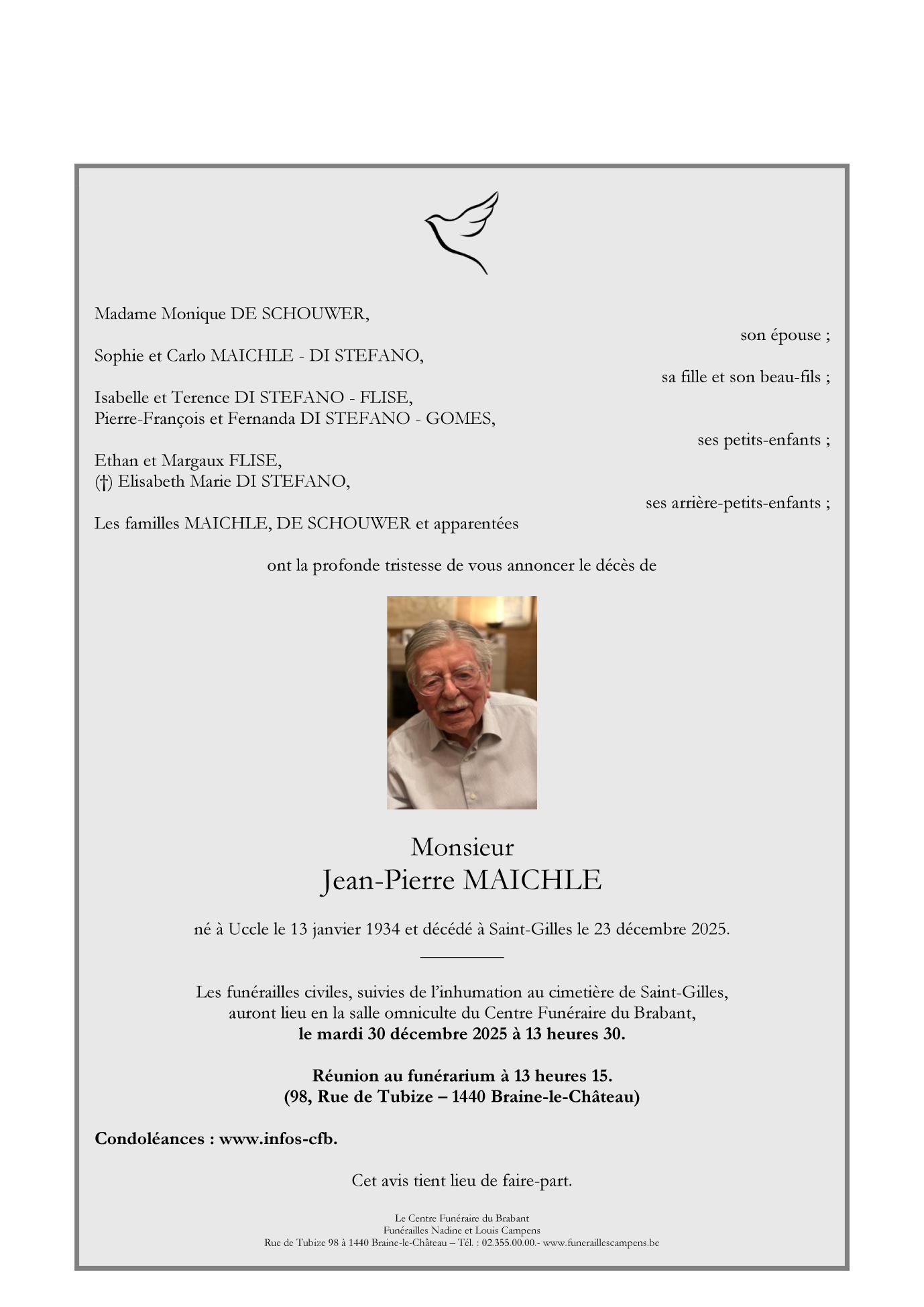 Décédé à Saint-Gilles (1060) le mardi 23 décembre 2025 à l'âge de 91 ans