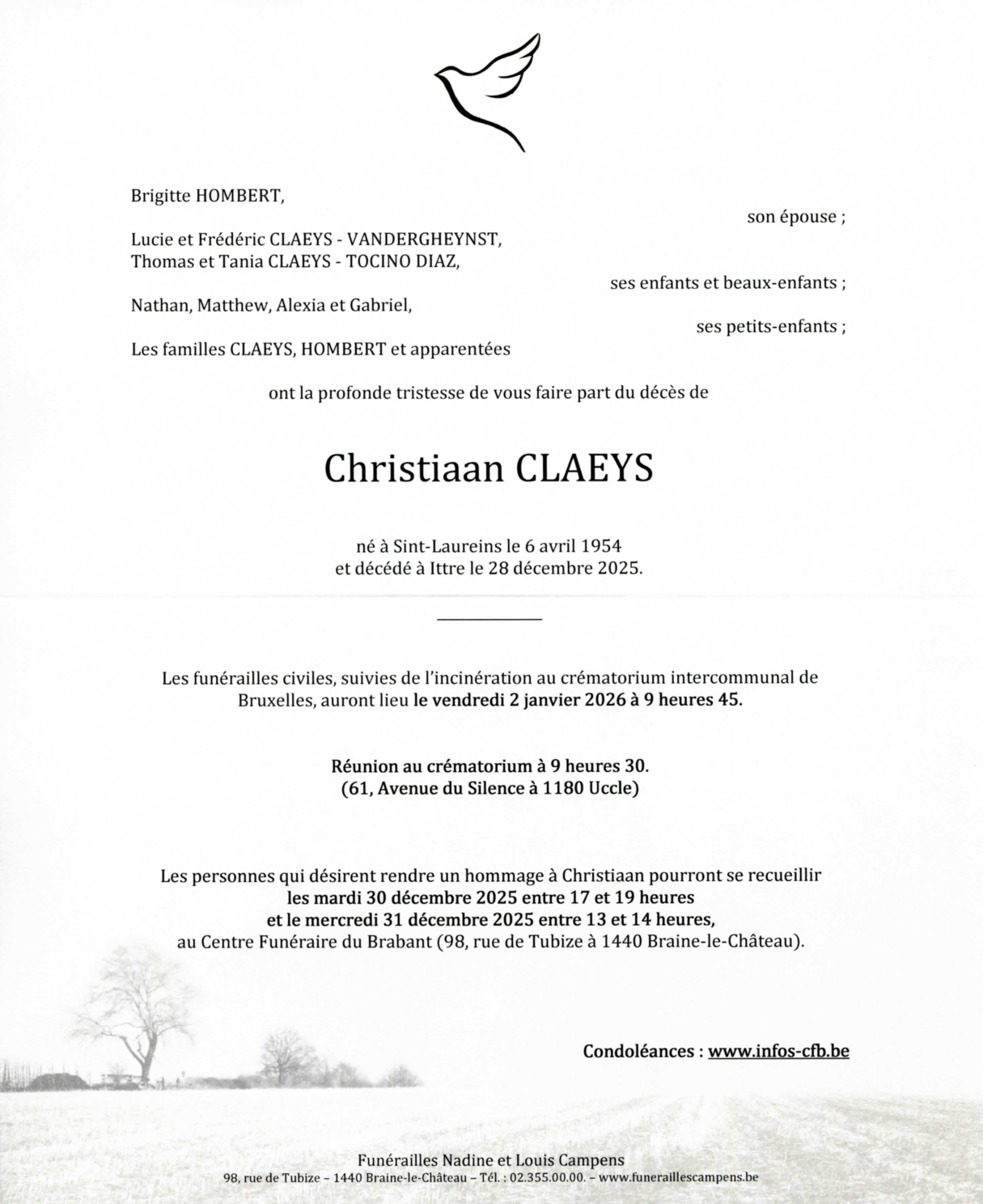Décédé à Ittre (1460) le dimanche 28 décembre 2025 à l'âge de 71 ans