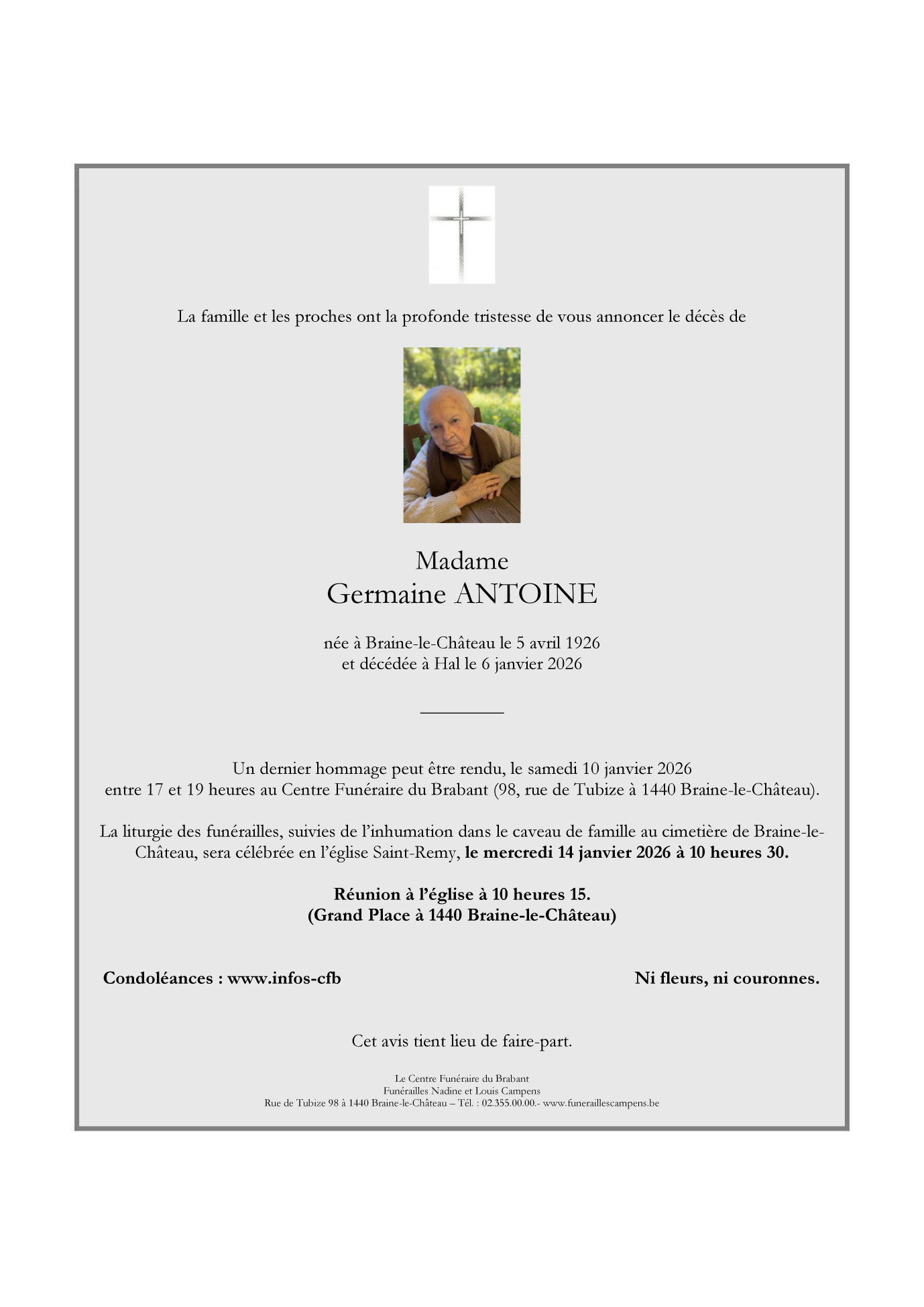 Décédée à Halle (1500) le mardi 6 janvier 2026 à l'âge de 99 ans