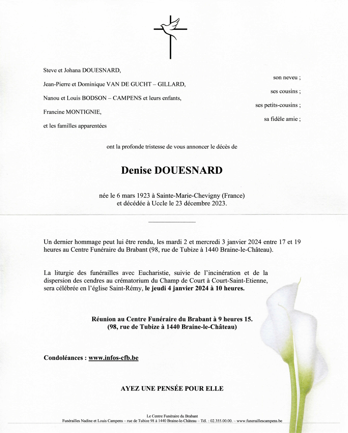 Décédée à Uccle (1180) le samedi 23 décembre 2023 à l'âge de 100 ans