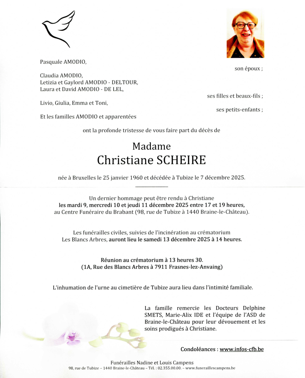Décédée à Tubize (1480) le dimanche 7 décembre 2025 à l'âge de 65 ans