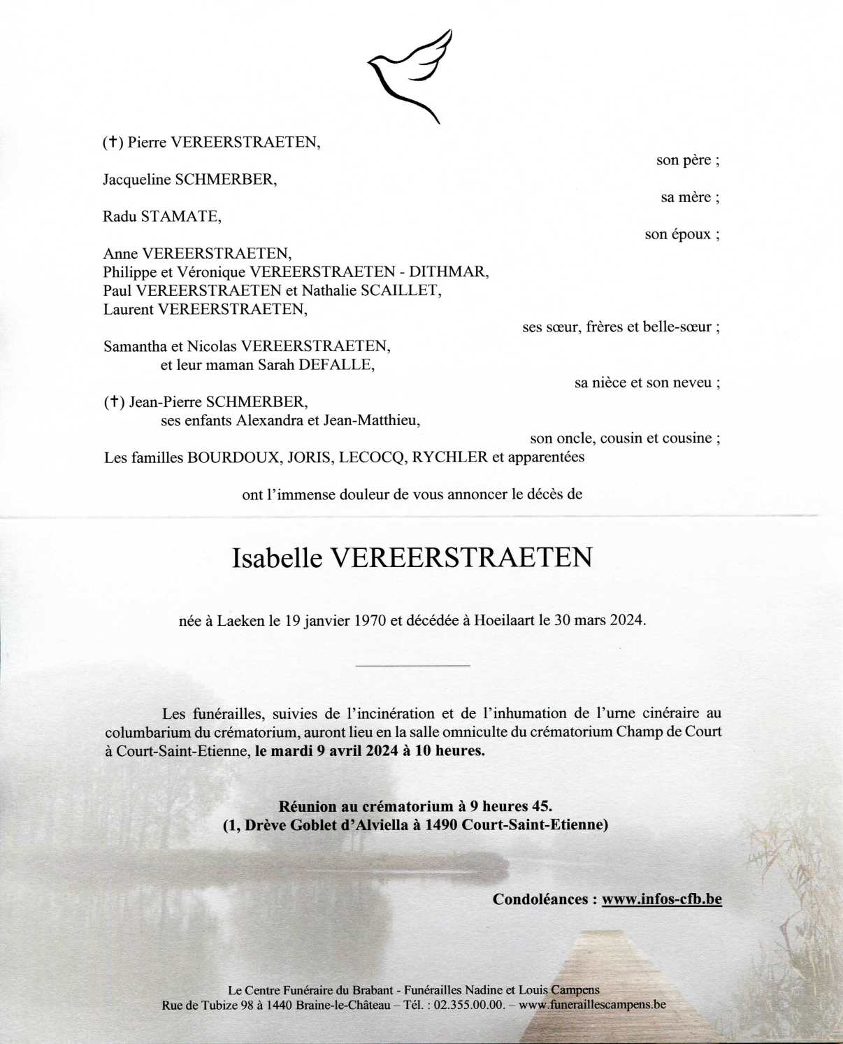Décédée à Hoeilaart (1560) le samedi 30 mars 2024 à l'âge de 54 ans