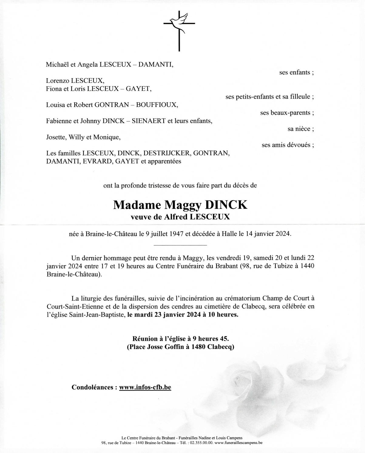 Décédée à Halle (1500) le dimanche 14 janvier 2024 à l'âge de 76 ans