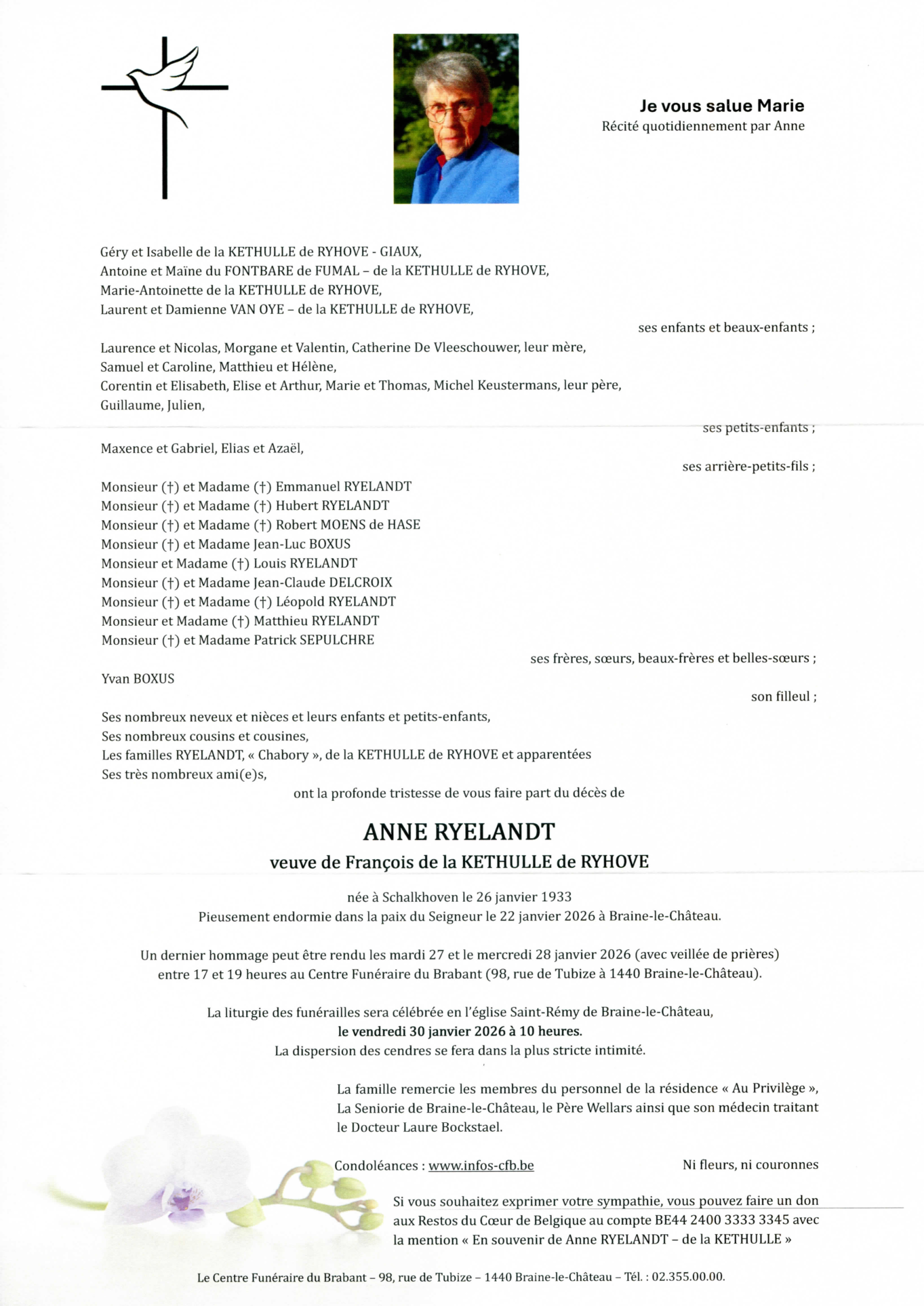 Décédée à Braine-le-Château (1440) le jeudi 22 janvier 2026 à l'âge de 92 ans