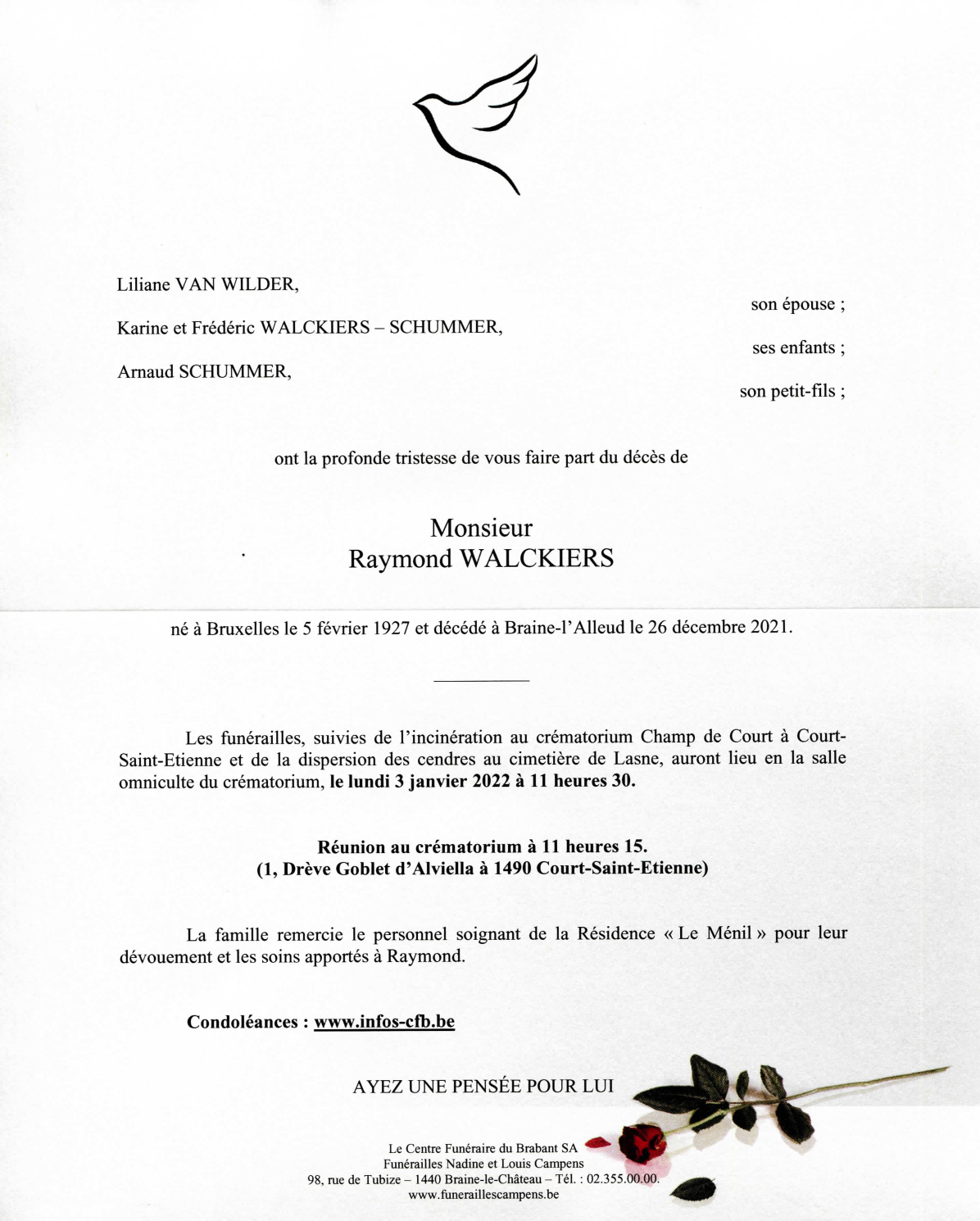Décédé à Braine-l'Alleud (1420) le dimanche 26 décembre 2021 à l'âge de 94 ans