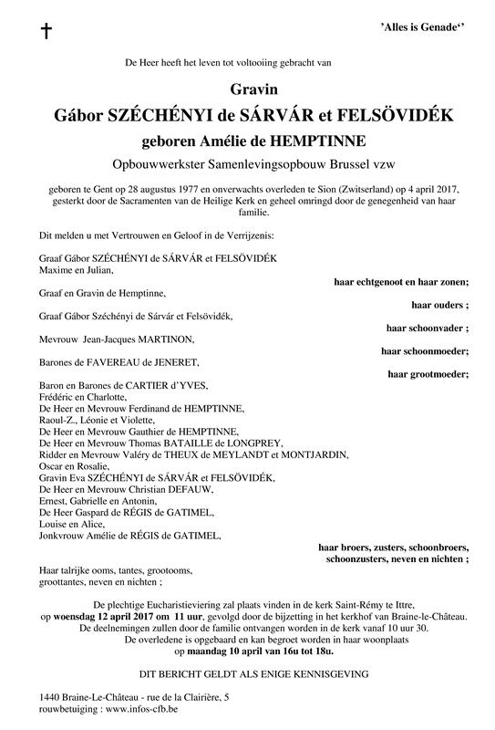 Epouse de Monsieur Gabor Széchényi de Sárvár et Felsövidék