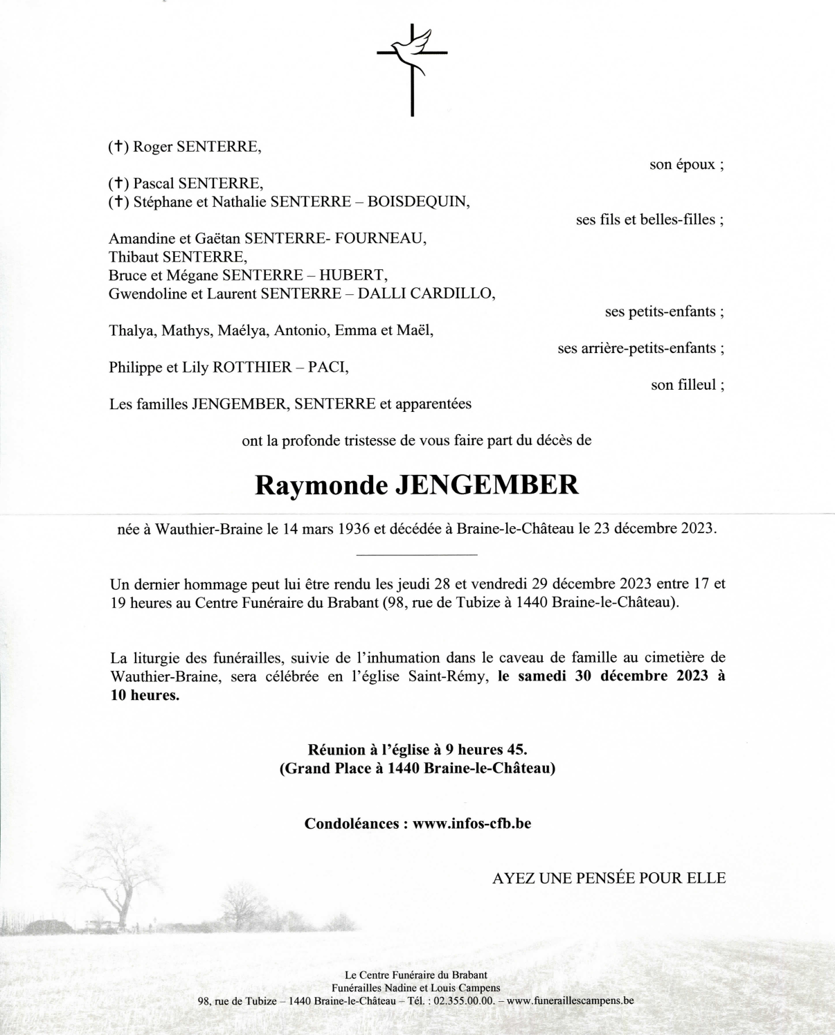 Veuve de Monsieur Roger SENTERRE