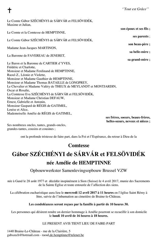 Epouse de Monsieur Gabor Széchényi de Sárvár et Felsövidék