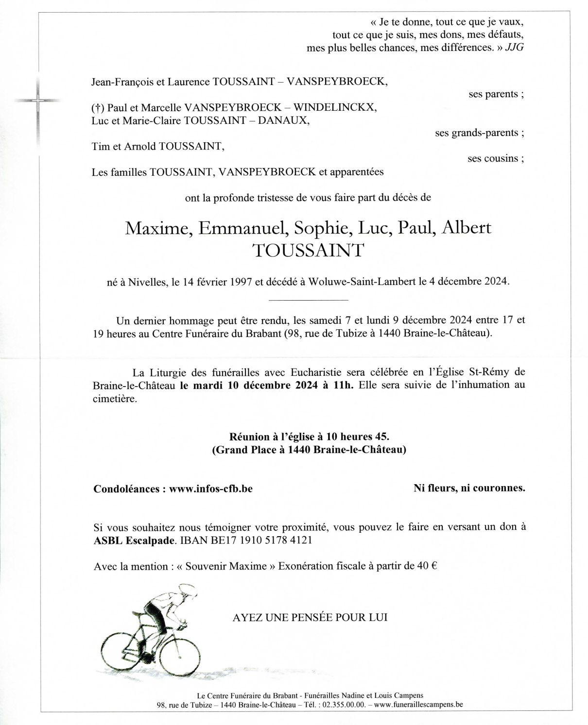 Décédé à Woluwe-Saint-Lambert (1200) le mercredi 4 décembre 2024 à l'âge de 27 ans